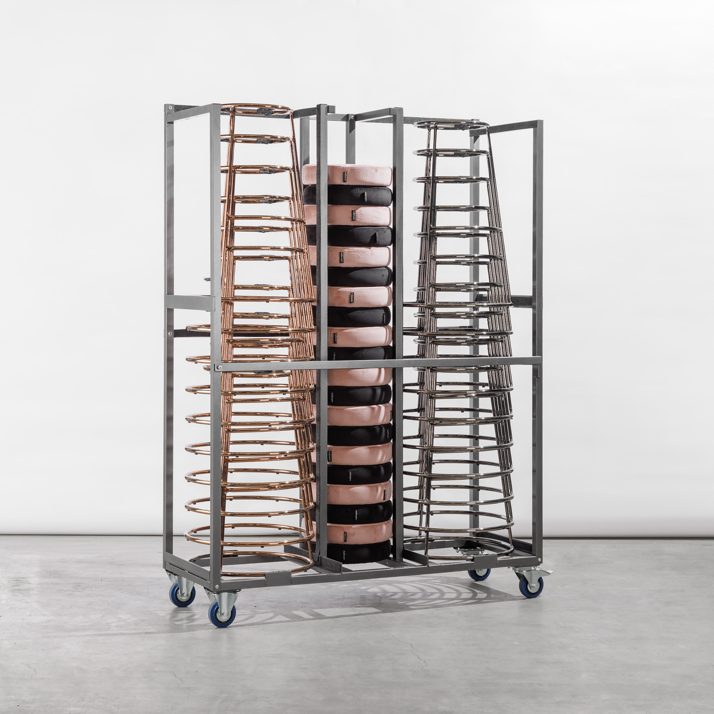 Maak je geen zorgen over het transport en de opslag van je Alice stoelen met deze praktische transportkar. Deze kar is speciaal ontworpen om zowel de stoelen als de bijhorende kussentjes efficiënt en overzichtelijk te vervoeren.