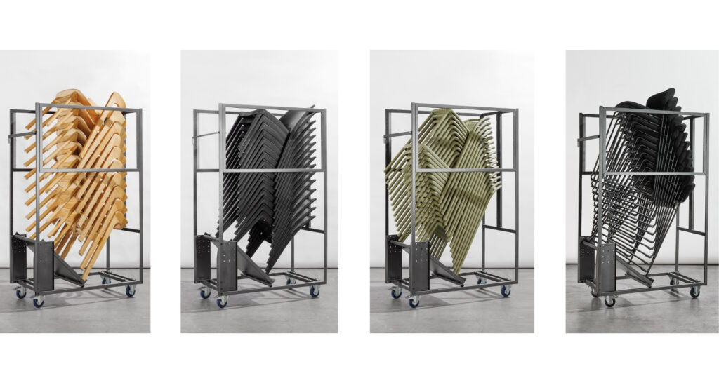 Nous développons également chariots universels Permettant de combiner différents types de chaises et de tables. Idéal pour les entreprises dont l'aménagement est variable.