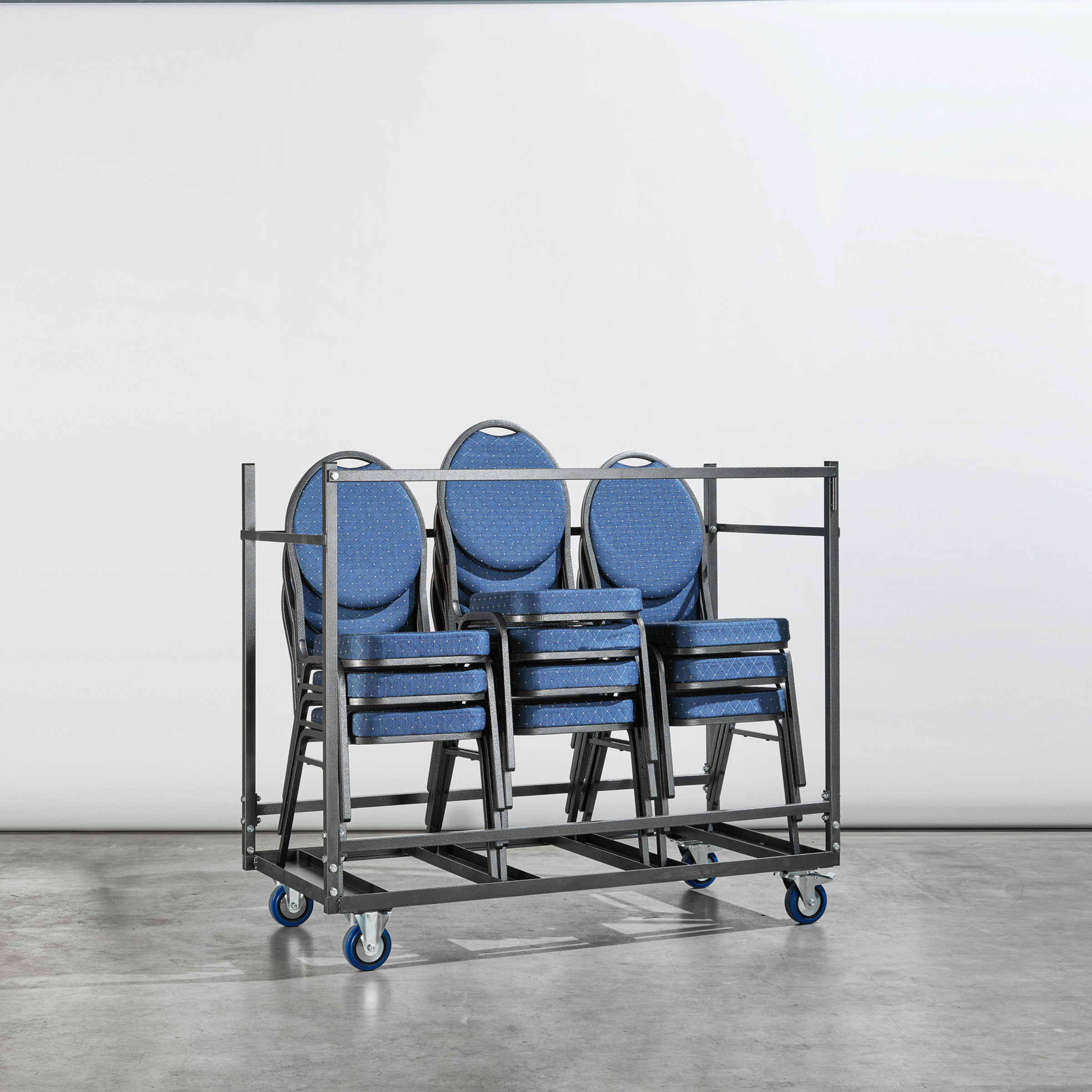 Ne vous souciez plus du transport, du rangement et de la protection de vos chaises empilables Budget grâce à notre chariot de transport pratique, pouvant accueillir jusqu'à 30 pièces. Ce chariot de transport est spécialement conçu pour vous faciliter la tâche ! Le chariot de transport est équipé de quatre roues vulcanisées robustes, dont deux roues pivotantes avec freins et deux roues fixes. De cette façon, vous pouvez manœuvrer sans effort dans différents espaces.