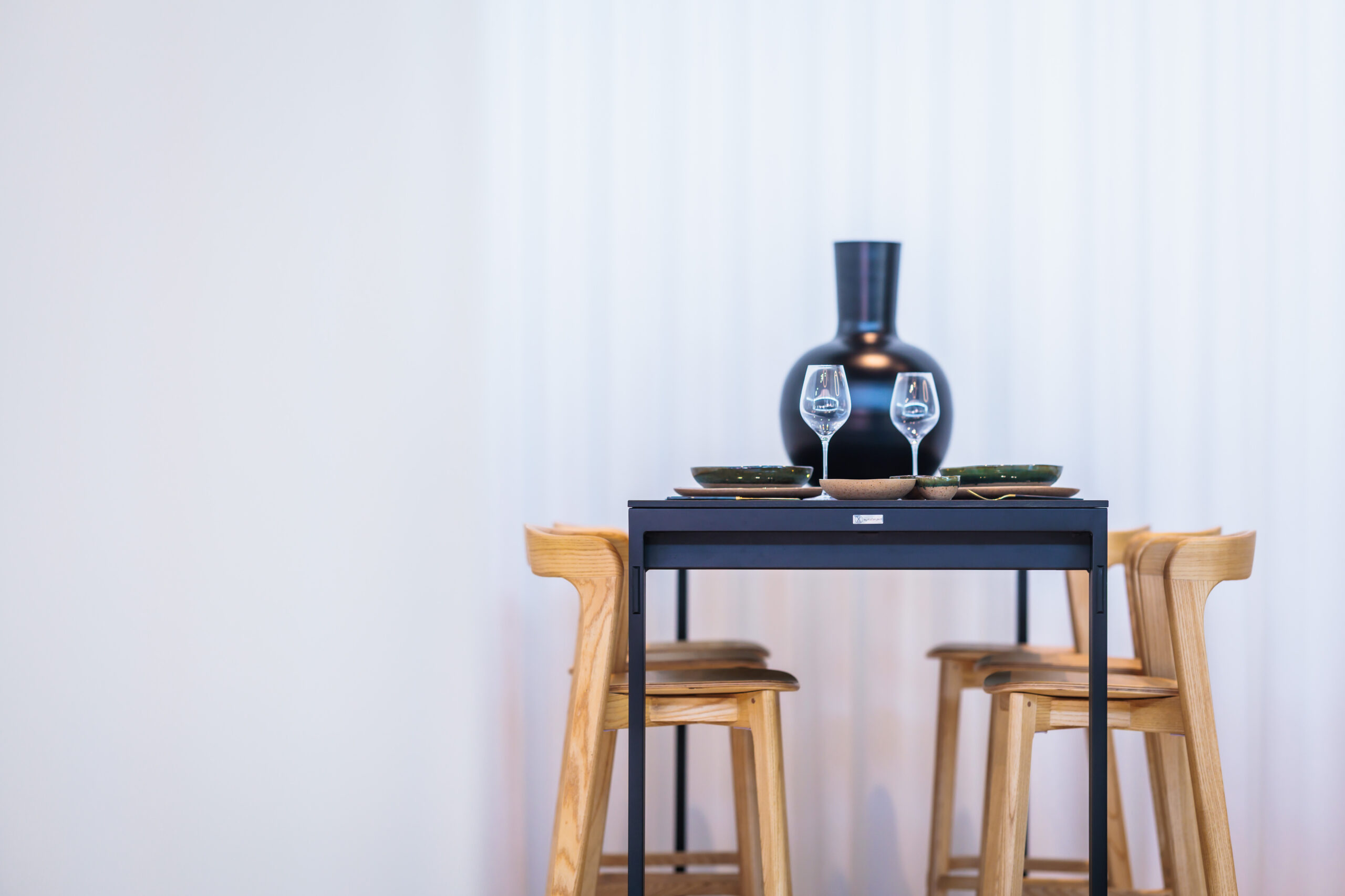 Naadloze match met tafelcollecties. De Nina barstoel komt optimaal tot zijn recht in combinatie met de Flow Grande en Wings Grande tafelcollecties. Deze combinatie zorgt voor een evenwichtige en doordachte totaalopstelling, waarbij design en functionaliteit hand in hand gaan. Ideaal voor recepties, baropstellingen en hospitality omgevingen waar beleving centraal staat.